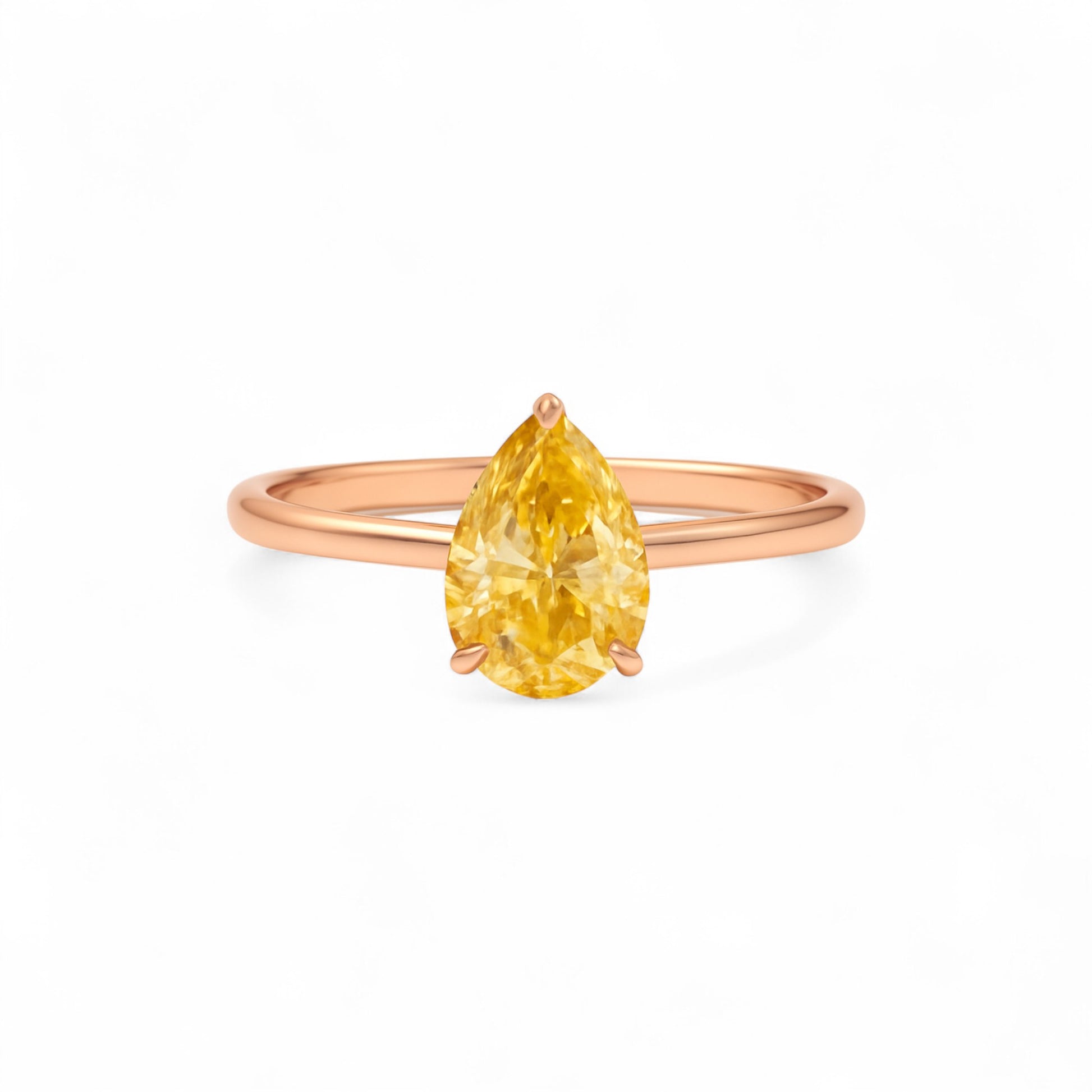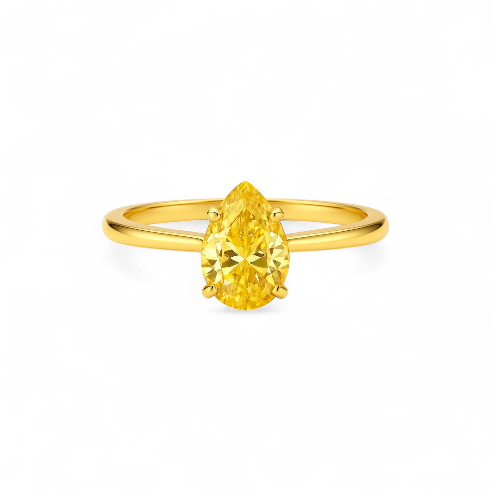 The Beth Pear Cut Moissanite Gemstone and Natural Diamonds Ring in 18K Gold is a radiant expression of elegance and modern luxury. Featuring a vivid pear-cut yellow moissanite set in lustrous 18K gold and accented with sparkling natural diamonds, this design captures light from every angle for a stunning, unforgettable glow.