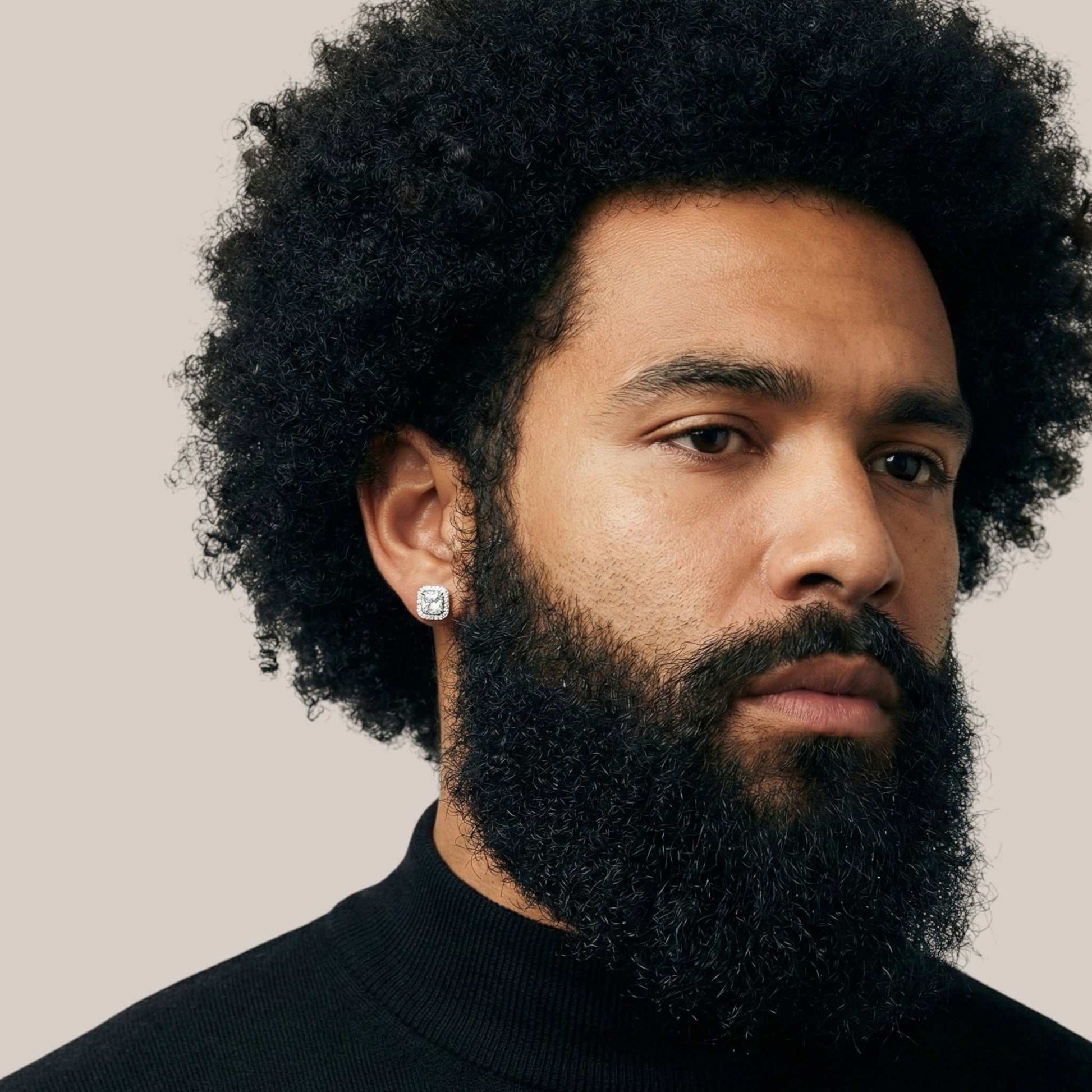 Celebrate a love that shines without end with our Athens Moissanite Rectangle Halo Stud Earrings. Crafted in polished sterling silver, these earrings feature a trio of baguette-cut moissanites framed by a halo of brilliant round stones, creating a luminous interplay of sparkle and symmetry.