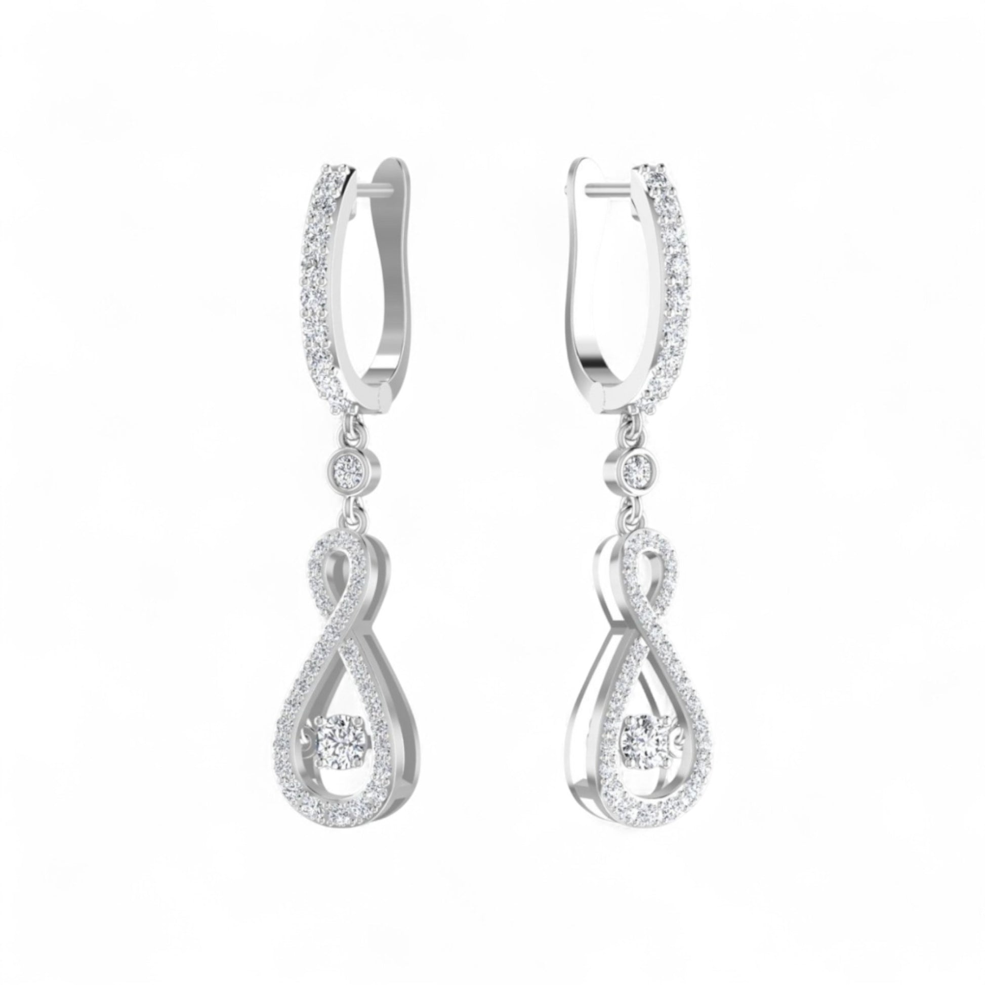 The Twinkle Infinie Drop Pavé Diamond Earrings in 18 Karat Gold are a radiant expression of love without limits, designed with graceful infinity-inspired drops lined in pavé-set natural diamonds and accented by a twinkling diamond at the center of each. Suspended from diamond-studded hoops, these earrings capture light with every movement, blending timeless elegance and modern artistry. Crafted to symbolize devotion that flows endlessly, they are the perfect statement for the woman who believes in love that shines forever.