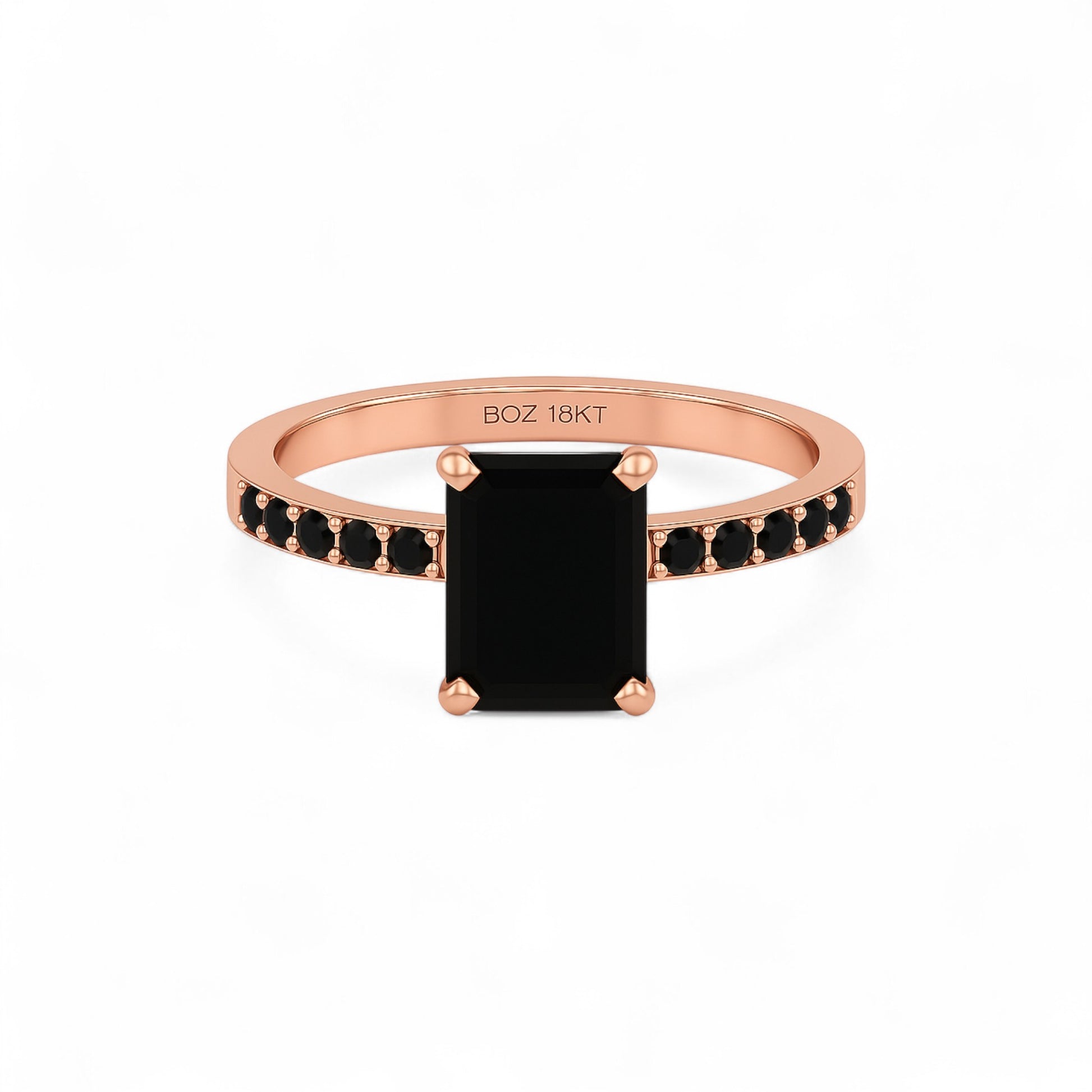 Home Collections Engagement Ring No Halo Black Emerald cut Moissanite Engagement Ring in 18K Gold