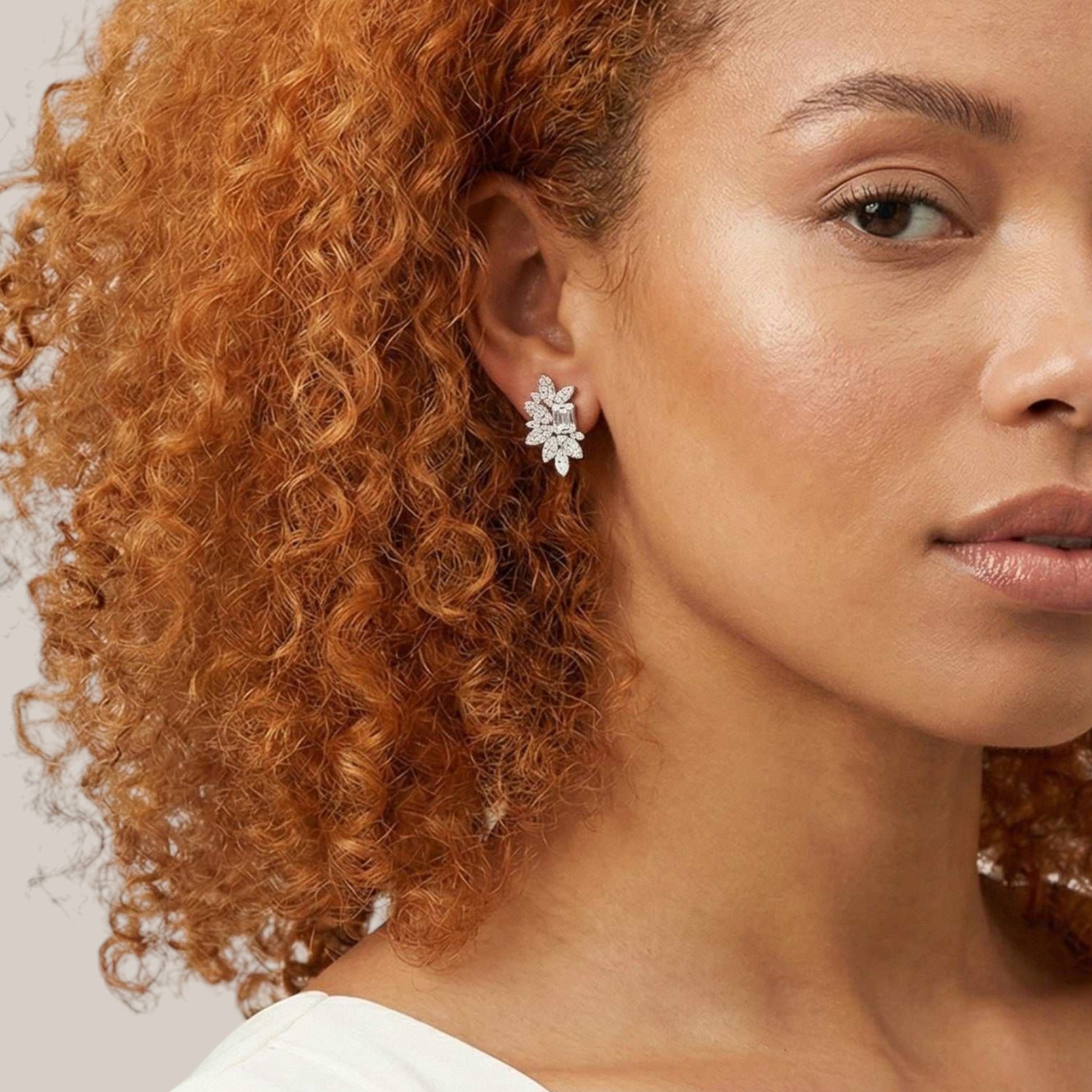 The BOZ Lyra Diamond Studs draw their brilliance from the stars, and adorned with a breathtaking mosaic of marquise, baguette, and round-cut natural diamonds. Designed in a layered cluster that evokes celestial movement, each stud shimmers like a starburst, telling a story of light, love, and infinite grace.