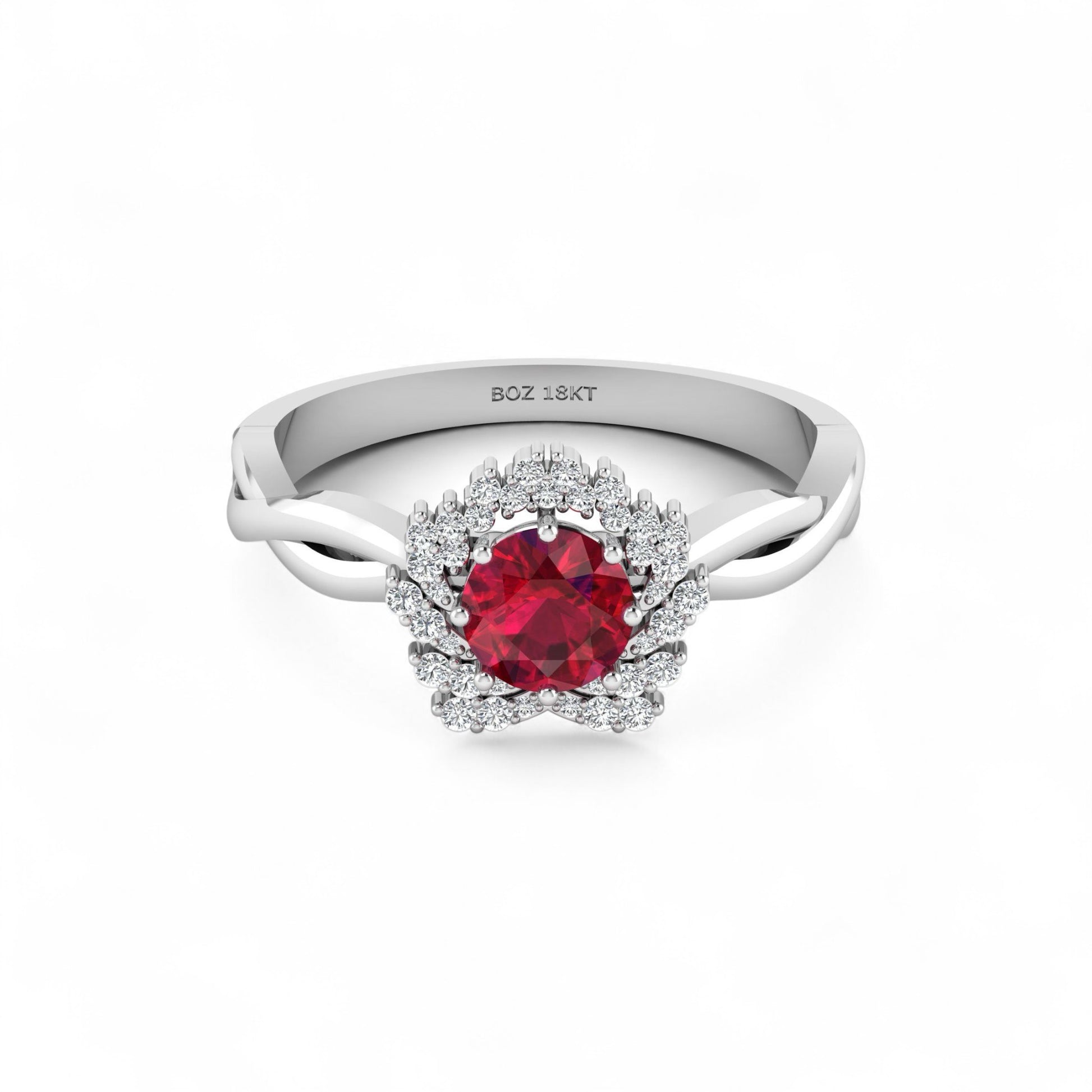 Vibrant, romantic, and timeless, the BOZ Forever Natural Diamond Gemstone Engagement Ring is a celebration of love’s most radiant expression. Handcrafted in luxurious 18 Karat gold, this design features a brilliant round-cut gemstones at its center, glowing with passion and individuality. A halo of natural diamonds surrounds the centerpiece, amplifying its brilliance, while the gracefully twisted band adds elegance and meaning, symbolizing two souls woven together as one.