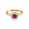 The vibrant gemstones radiates passion and warmth, capturing the intensity of first love and the tenderness of forever. Surrounded by diamonds, it is a reflection of a love that is fearless, vibrant, and unforgettable.