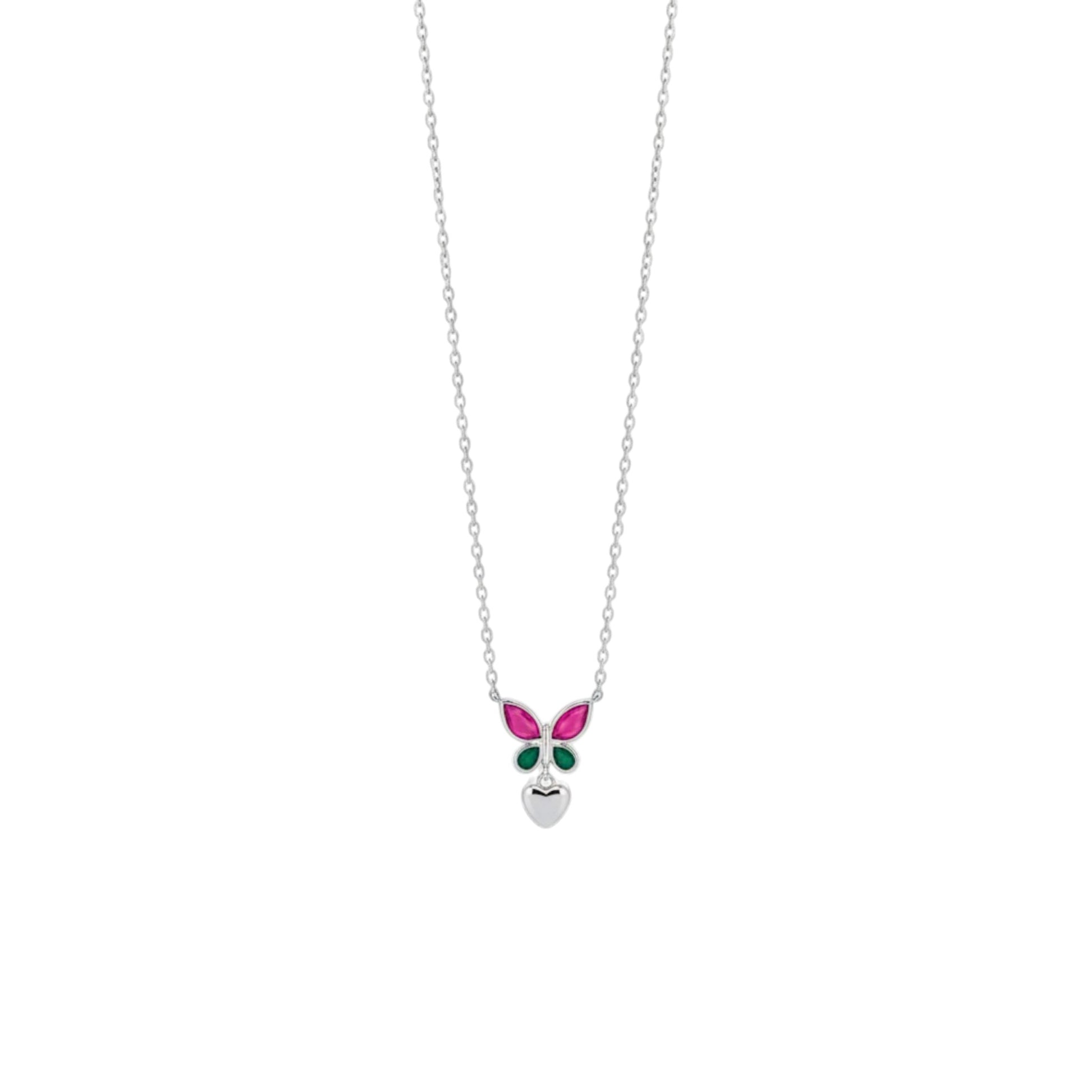 Emerald And Pink Butterfly Heart Necklace in 925 Sterling Silver