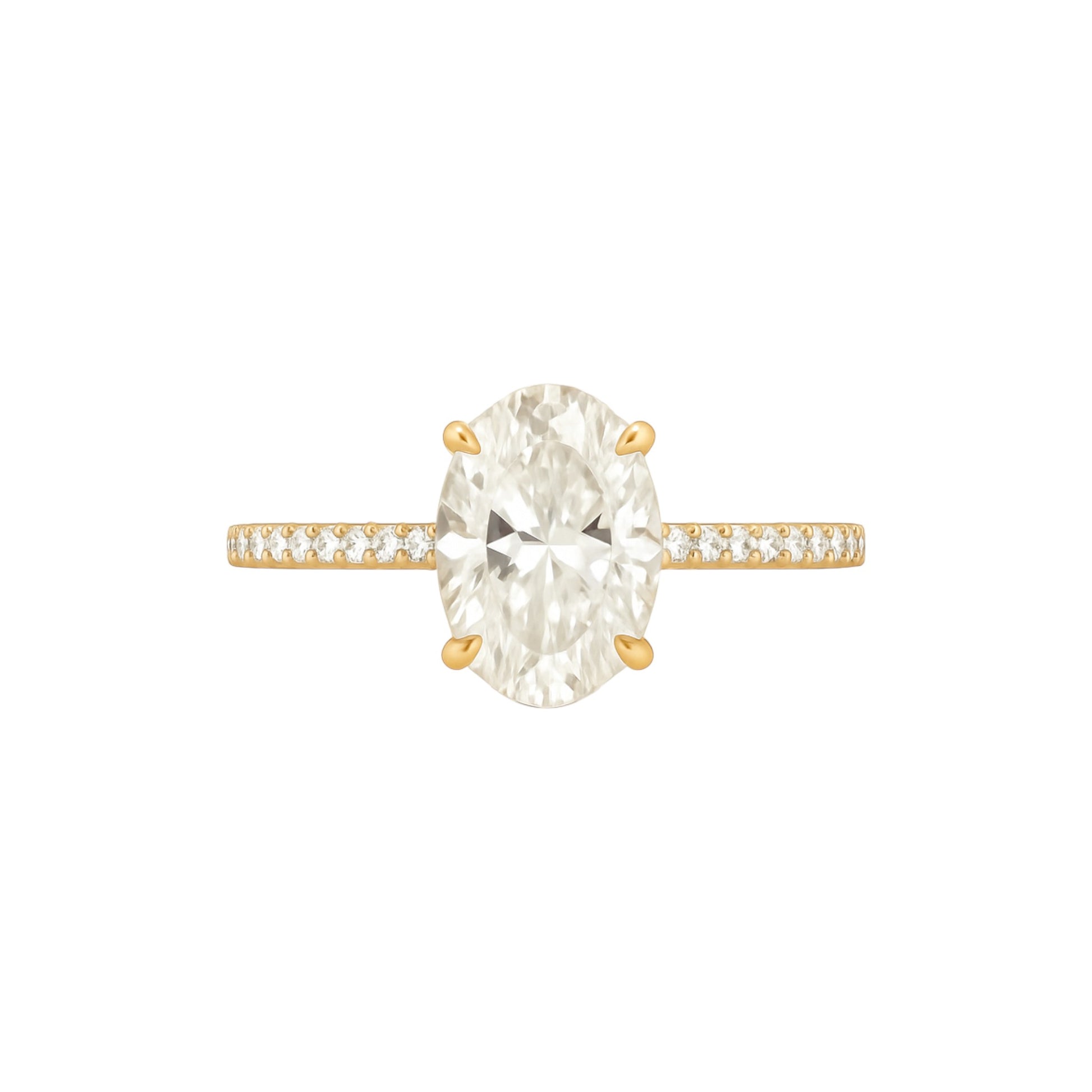 Sleek, timeless, and radiant, the K Engagement Ring is a perfect harmony of elegance and brilliance. Handcrafted in luxurious 18K gold, this design features a stunning oval-cut moissanite as the centerpiece, its facets glowing with fire and clarity. The slender band, delicately lined with natural diamonds, adds a refined sparkle while allowing the center stone to take center stage.