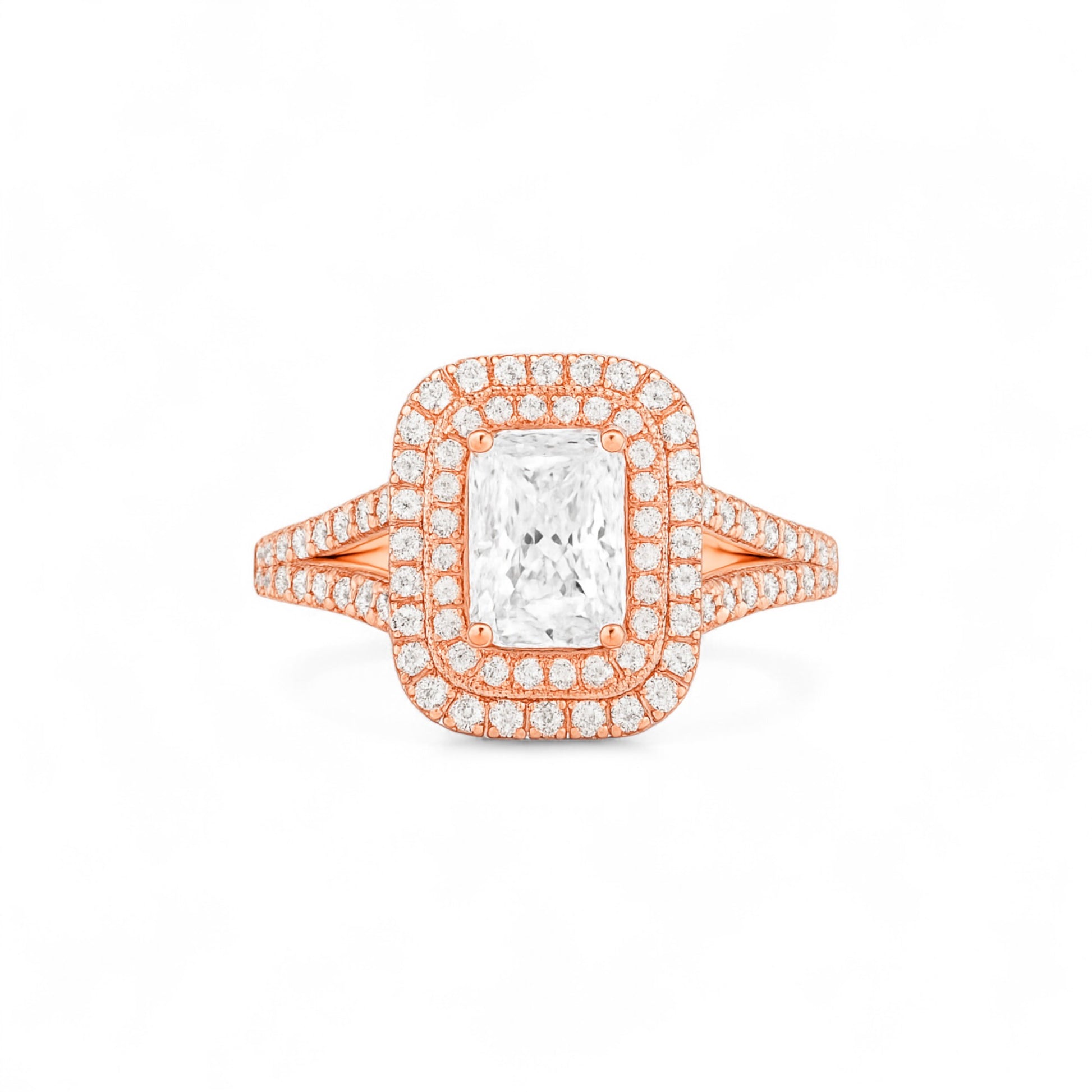 Kylie is more than an engagement ring, it’s a celebration of everlasting devotion. The radiant cut symbolizes light and clarity, while the twin halos and split shank mirror layers of love and protection, making it the perfect reflection of a bond that only grows stronger over time.