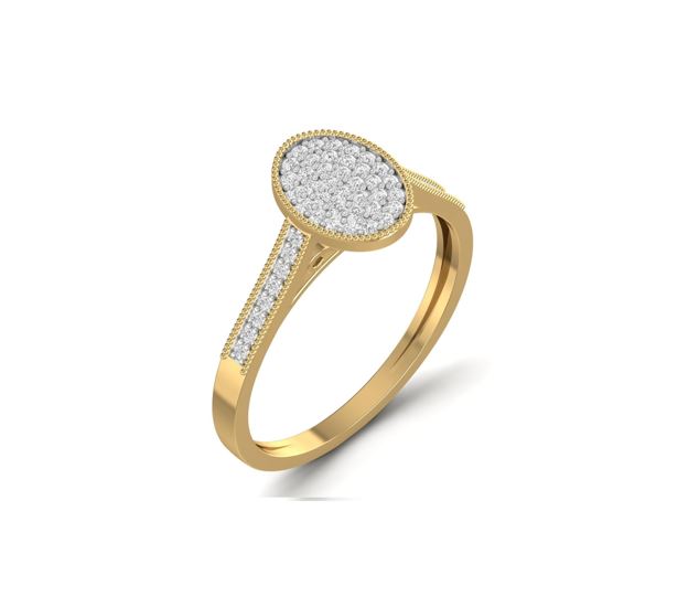 Graceful and radiant, the Pearl Oval Cut Diamond Engagement Ring is a timeless expression of love and elegance. Crafted in luminous 10 Karat gold, this design features a brilliant cluster of diamonds in an oval-cut silhouette, creating a stunning centerpiece that sparkles with every glance. The band, adorned with pavé-set diamonds and fine milgrain detailing, adds depth, sophistication, and vintage charm.