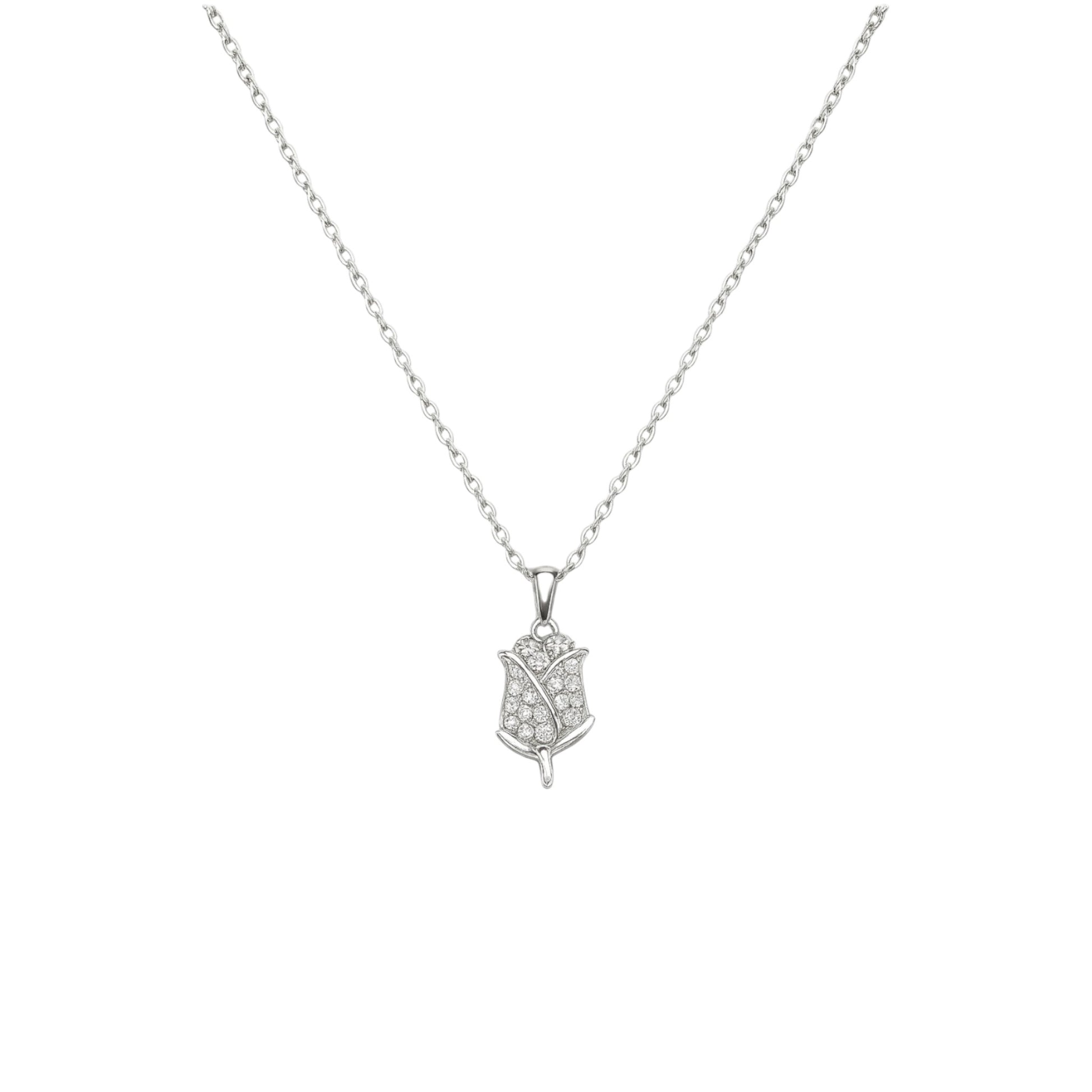 Gracefully sculpted to resemble a blooming rose, this pendant is a radiant symbol of love in full bloom. Crafted in luminous 925 sterling silver and adorned with pavé-set moissanite stones across each delicate petal, the Iced Rose Pendant captures light and hearts with every glimmer.