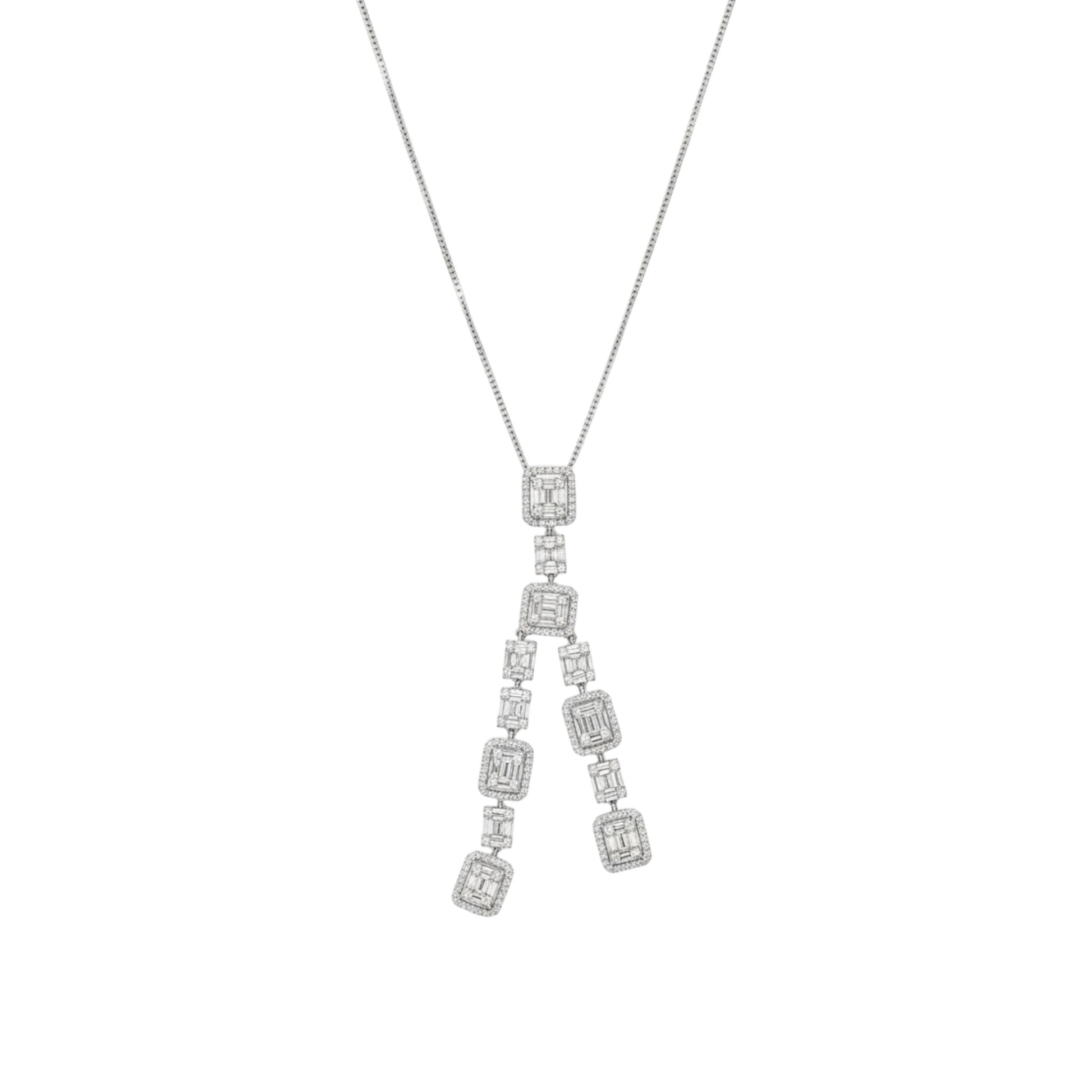 Home Collections White Gold Jewelry 6 Round and Baguette Natural Diamond Necklace in 18KT Gold