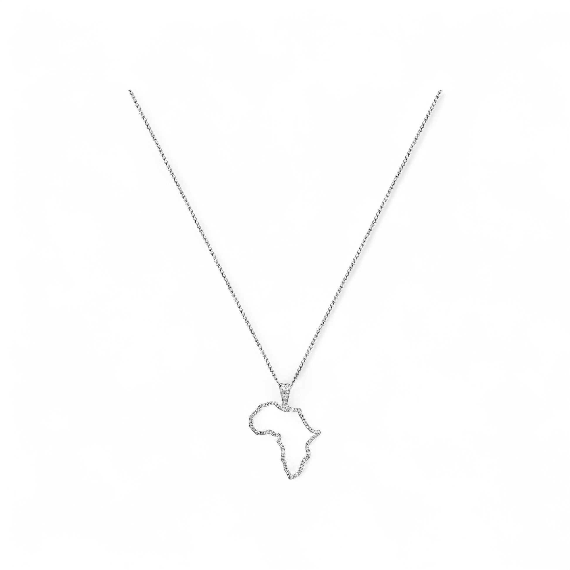 Home Collections White Gold Jewelry African Map Outline Diamond Pendant Necklace in 18K Gold