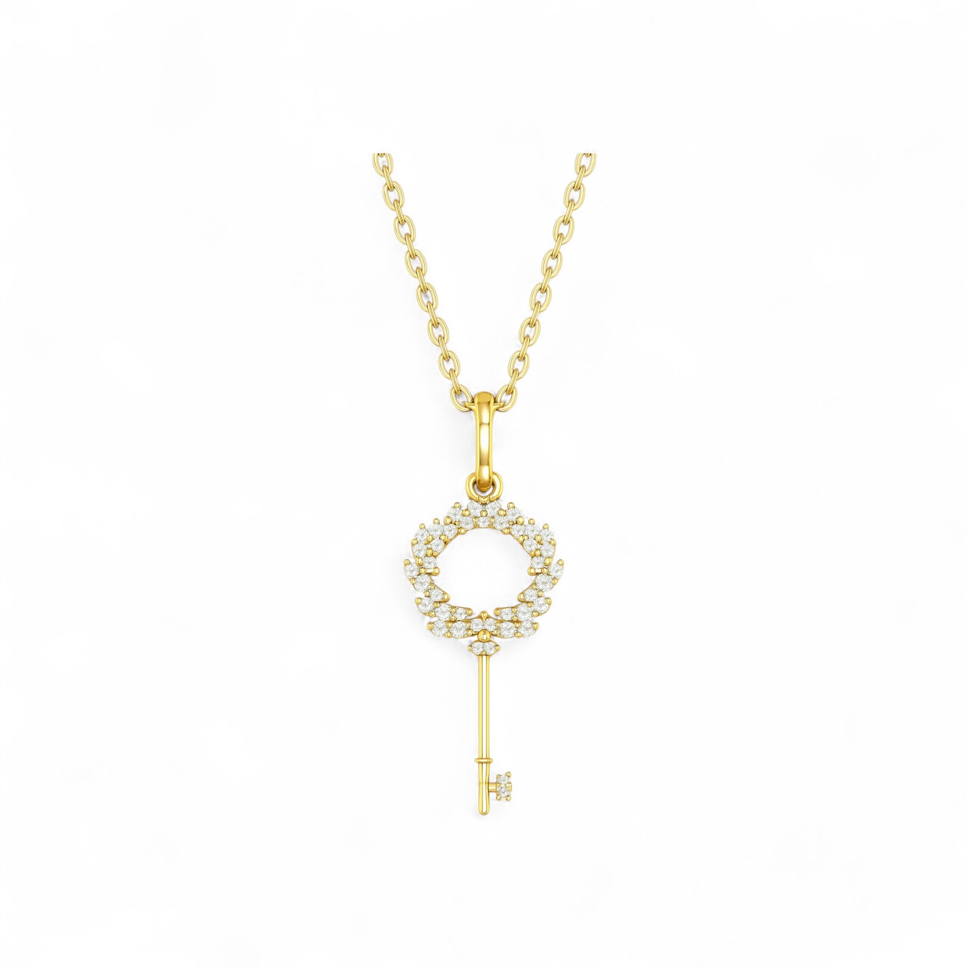 Timeless, symbolic, and elegantly radiant, the BOZ Forever Key Diamond Necklace in 18K Gold is a striking emblem of love, opportunity, and lasting connection. Featuring a finely crafted key pendant adorned with brilliant natural diamonds, this necklace represents the key to the heart, the future, or cherished dreams.
