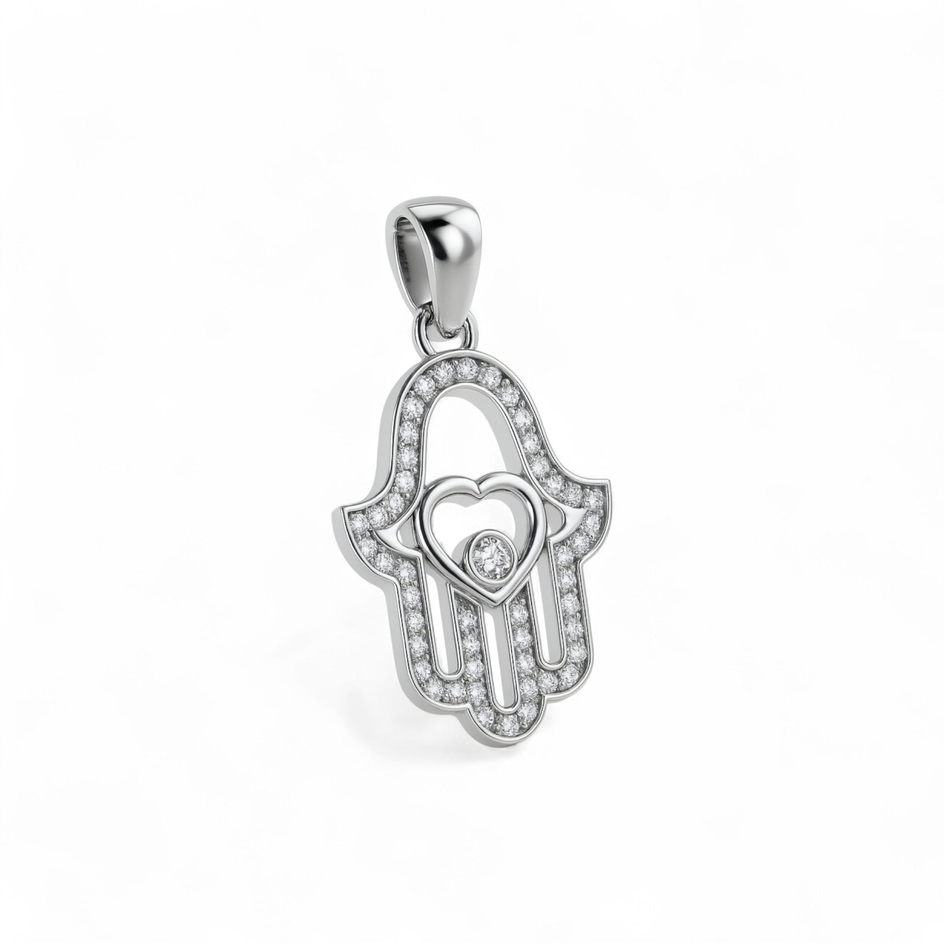 Home Collections White Gold Jewelry Hamsa Natural Diamond Pendant in 18K Gold