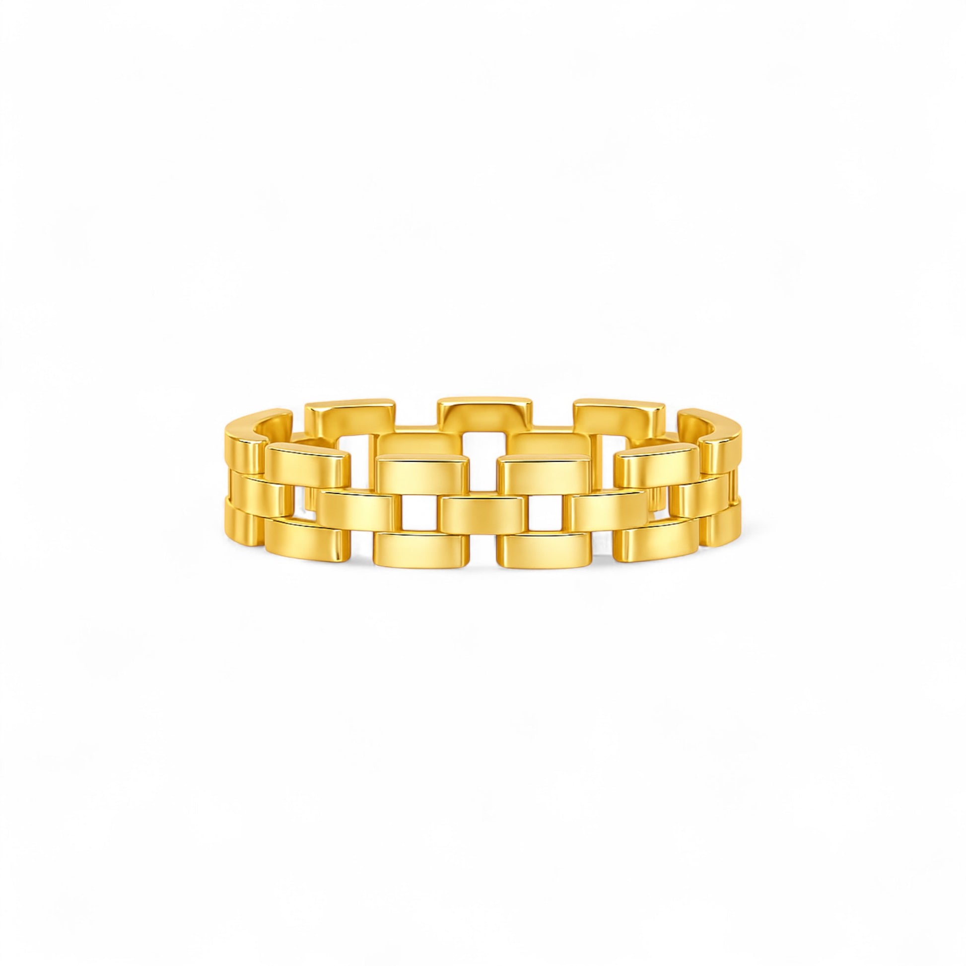 Its sculptural silhouette adds texture and character, making it the perfect statement piece for those who appreciate modern minimalism with a touch of attitude. Whether worn alone or layered, the Link Band is a powerful symbol of strength, unity, and style.