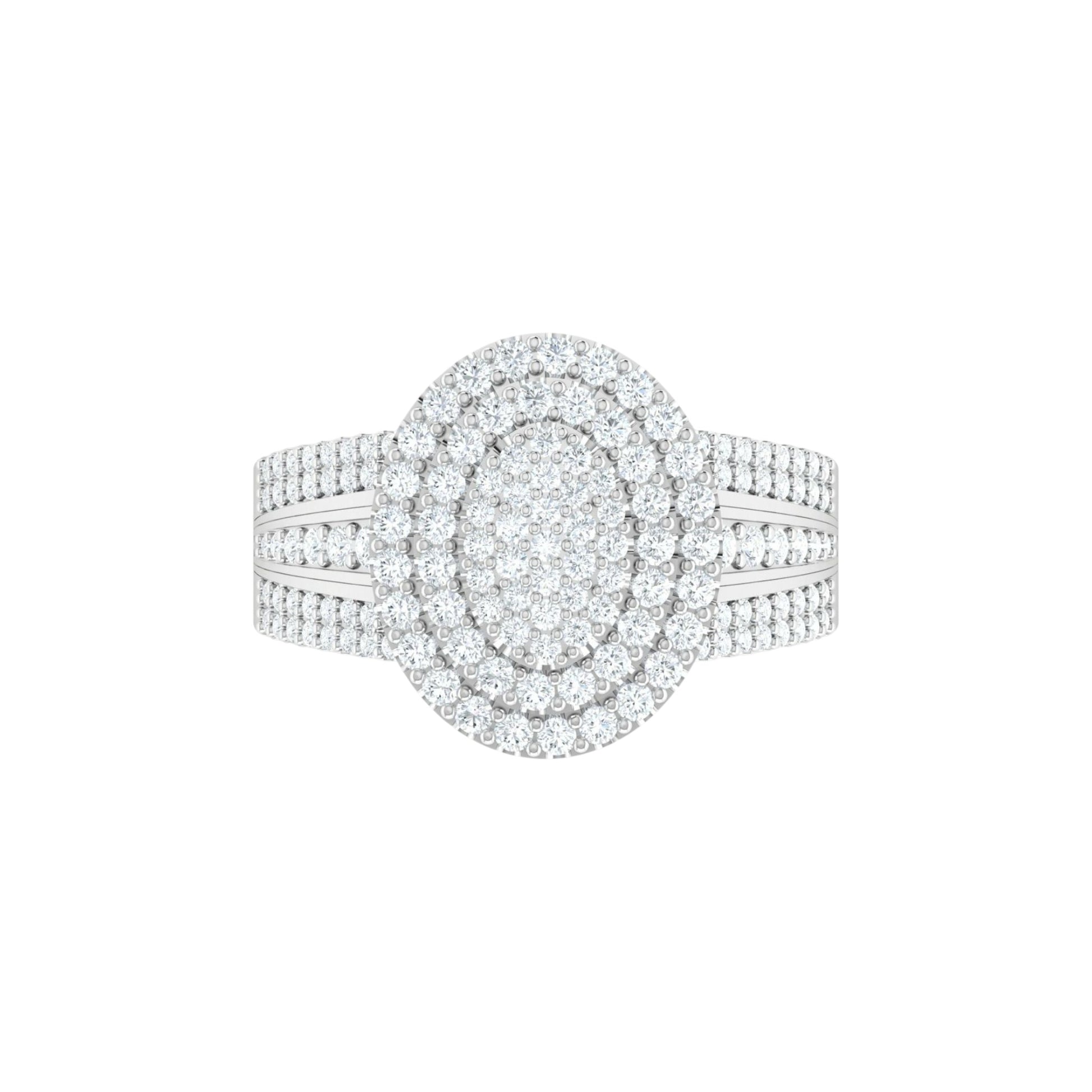 The Omoni Oval Cluster Natural Diamond Engagement Ring in 18 Karat Gold is a breathtaking display of brilliance and craftsmanship. Featuring an oval-shaped cluster of meticulously set natural diamonds, surrounded by multiple halo layers and complemented with a triple-row diamond band, this ring radiates sophistication and grandeur. Crafted in luminous 18K gold, it is the perfect statement of everlasting elegance and luxury