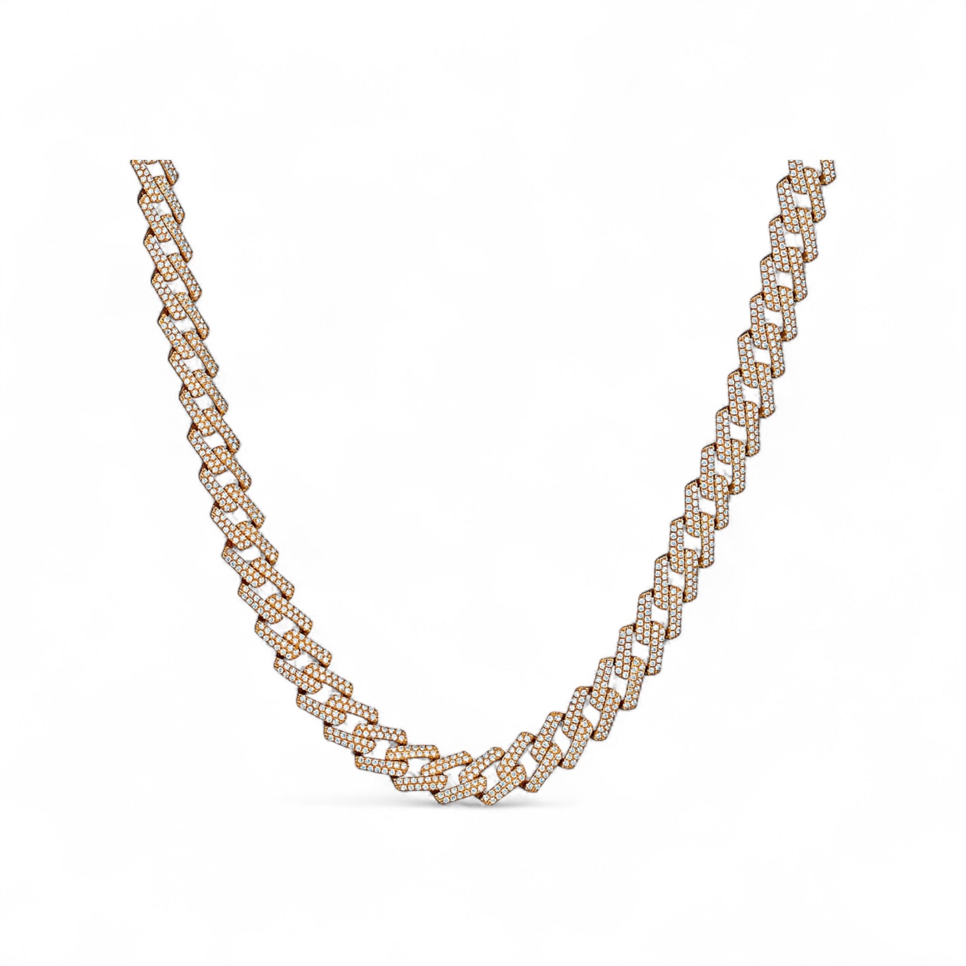 Powerful, luxurious, and built to impress, the Prong Cuban 8mm Natural Diamond Necklace in 18K Gold is the ultimate statement in high-end craftsmanship and bold elegance. Featuring tightly set natural diamonds on every link of its iconic Cuban chain, each 8mm prong-set link radiates brilliance and strength from every angle.