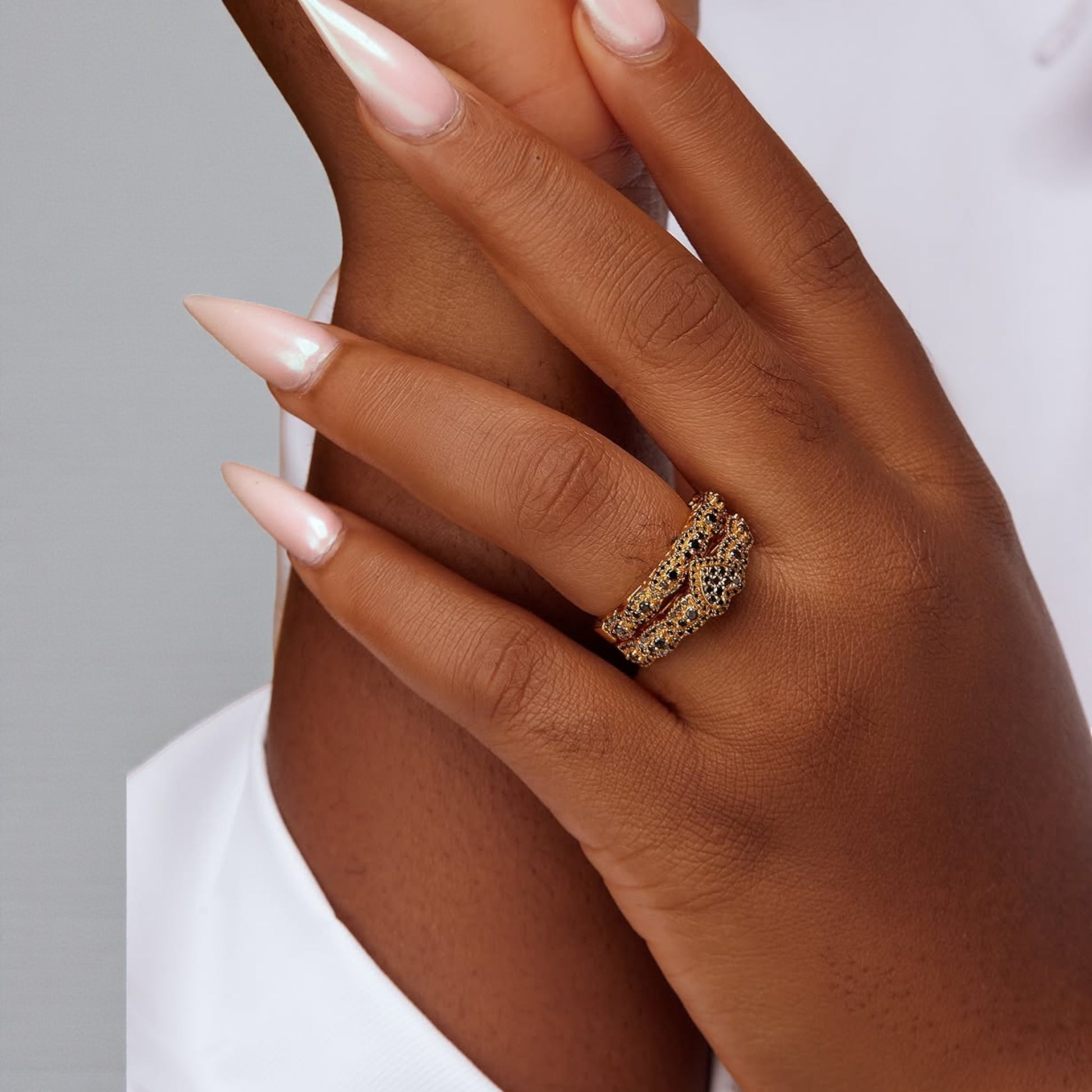 Boldly romantic and beautifully unconventional, the Ruby Engagement Ring showcases a stunning heart-cut black diamond, a symbol of deep, fearless love. Surrounded by a delicate cluster of shimmering accent stones, the center gem is set in rich 18K gold for a look that is both luxurious and unforgettable. The contoured matching band adds harmony and elegance, completing a set designed for the bride who embraces individuality, strength, and timeless style with a daring twist.