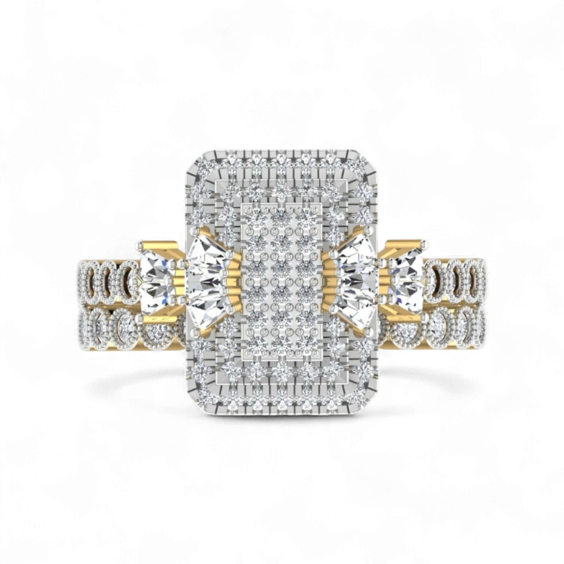 Lucy Radiant Cut Natural Diamond Cluster Bride Set in 18KT Gold