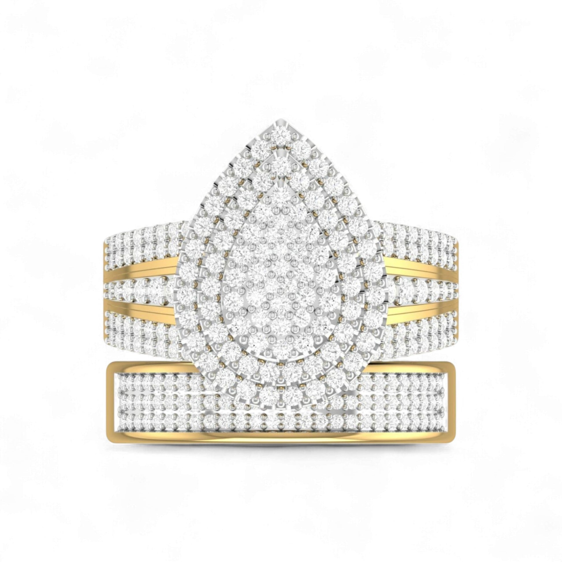 Omoni Pear Cut Natural Diamond Cluster Bride Set 18KT Gold