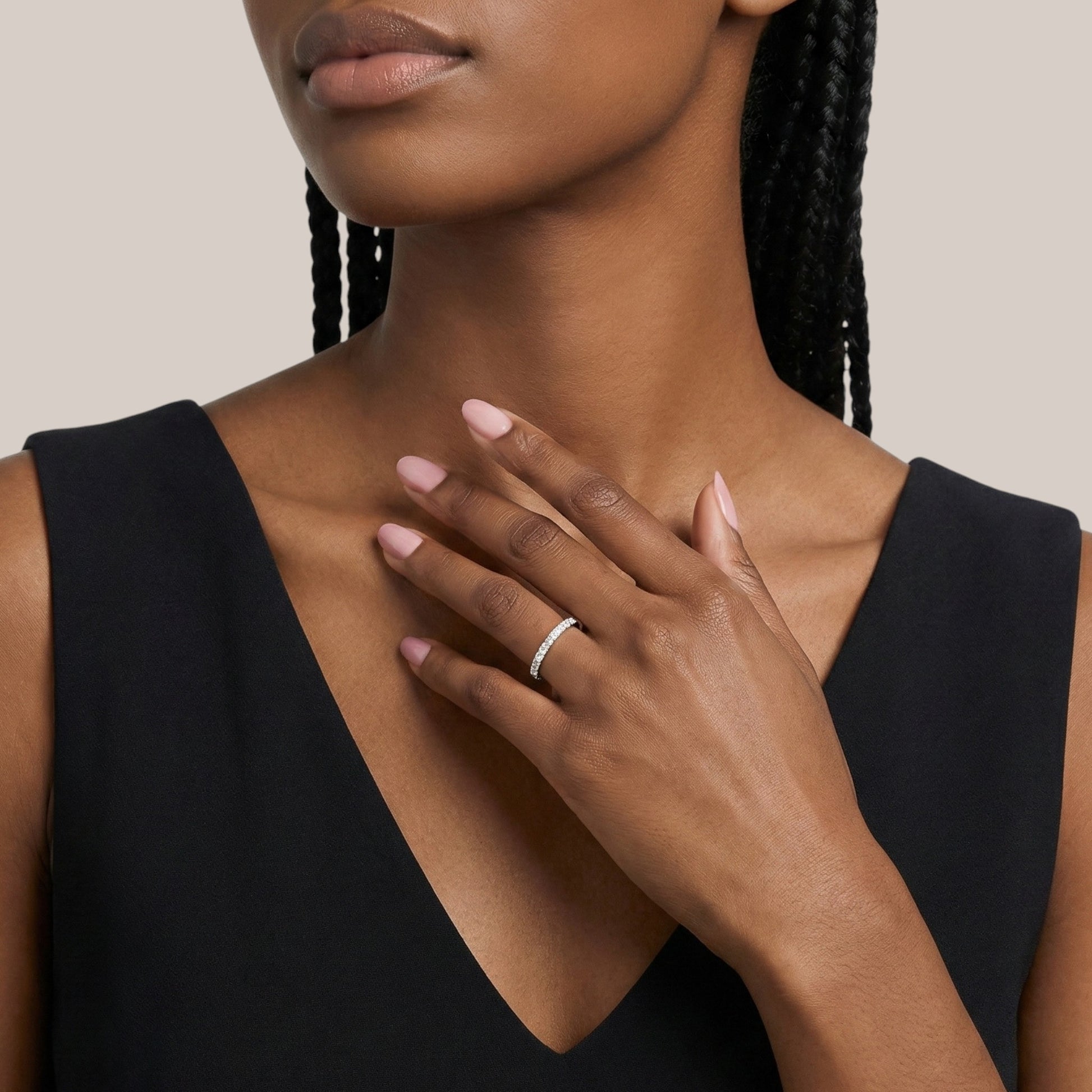 Delicate yet dazzling, the 2MM Pavé CZ Band is the perfect touch of everyday sparkle. This slender band is adorned with a fine row of brilliant pavé-set cubic zirconia stones, meticulously placed to catch the light with every movement.