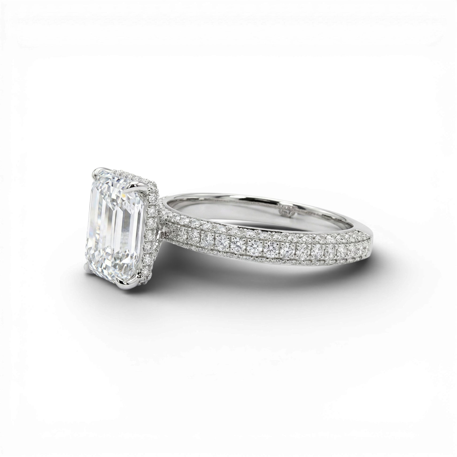 Amina Emerald Cut Moissanite Engagement Ring in 18KT Gold