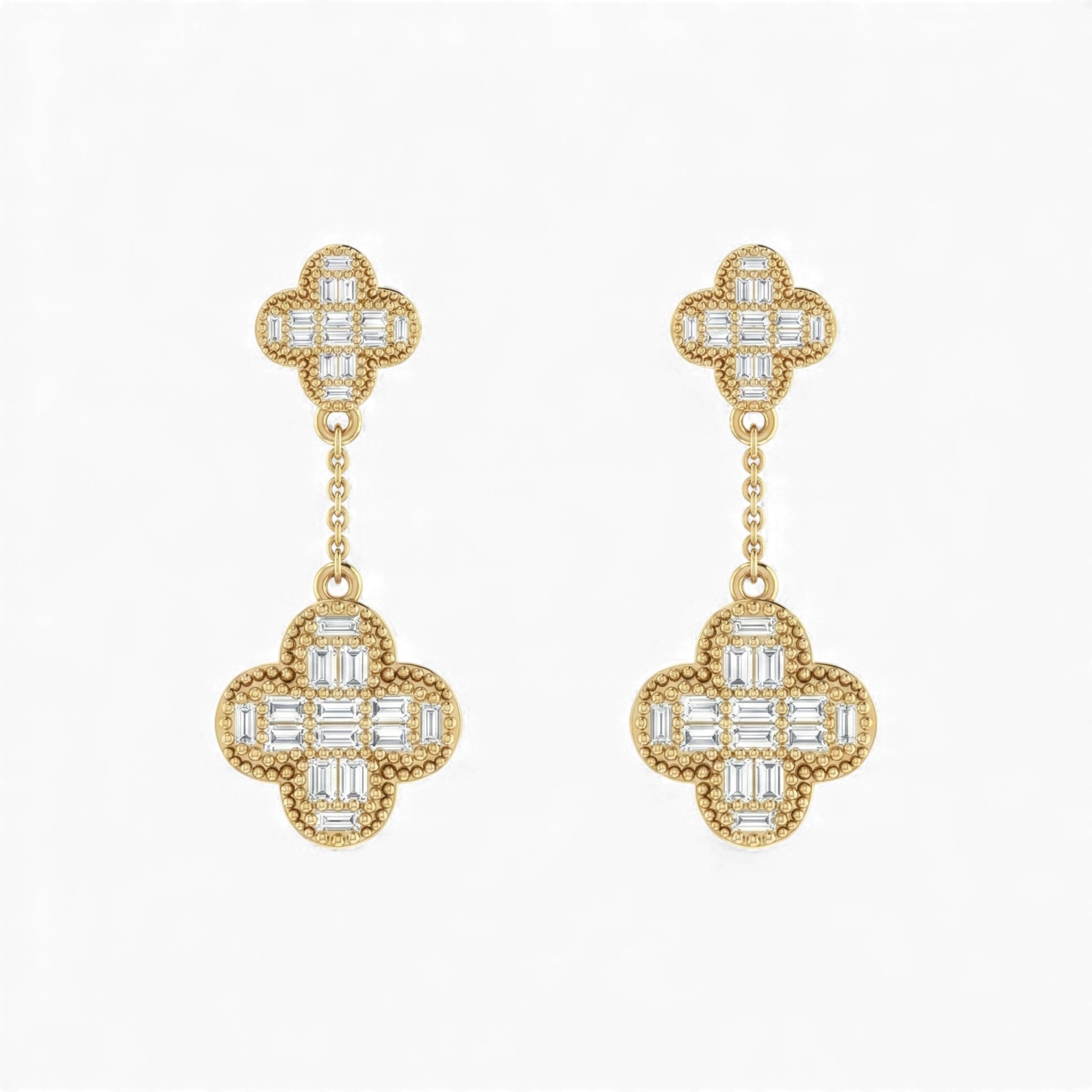 Baguette Clover Drop Diamond Earrings 18KT Gold