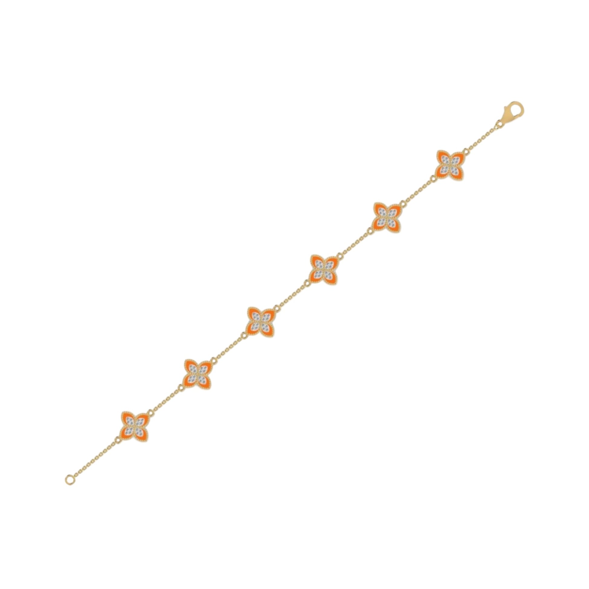 Delicate yet meaningful, the 6 Clover Dual Diamond Bracelet brings together elegance and symbolism in a graceful design. Featuring six intricately crafted flora motifs, each accented with sparkling natural diamonds, this bracelet is a timeless expression of luck, love, and light.