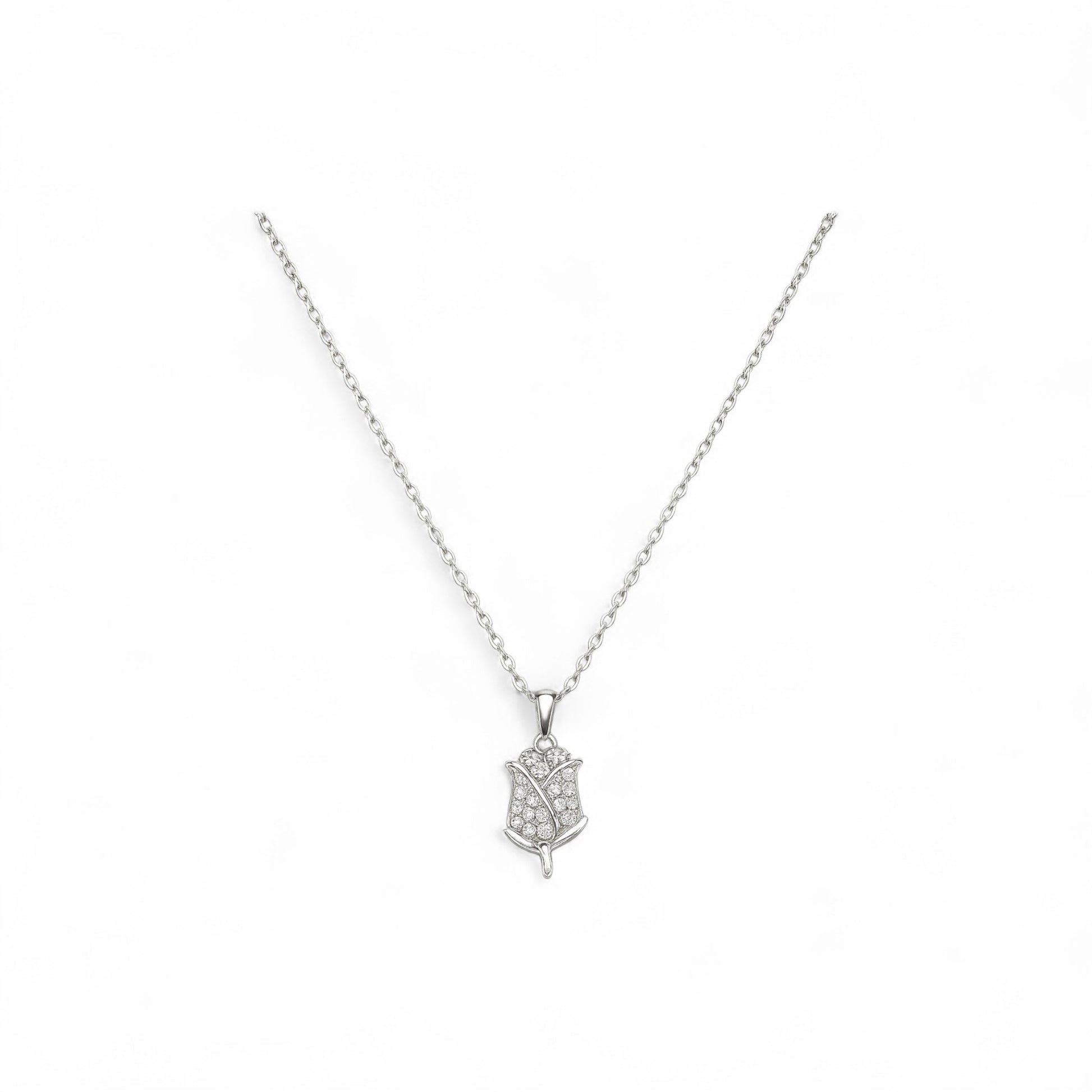 Gracefully sculpted to resemble a blooming rose, this pendant is a radiant symbol of love in full bloom. Crafted in luminous 925 sterling silver and adorned with pavé-set moissanite stones across each delicate petal, the Iced Rose Pendant captures light and hearts with every glimmer.