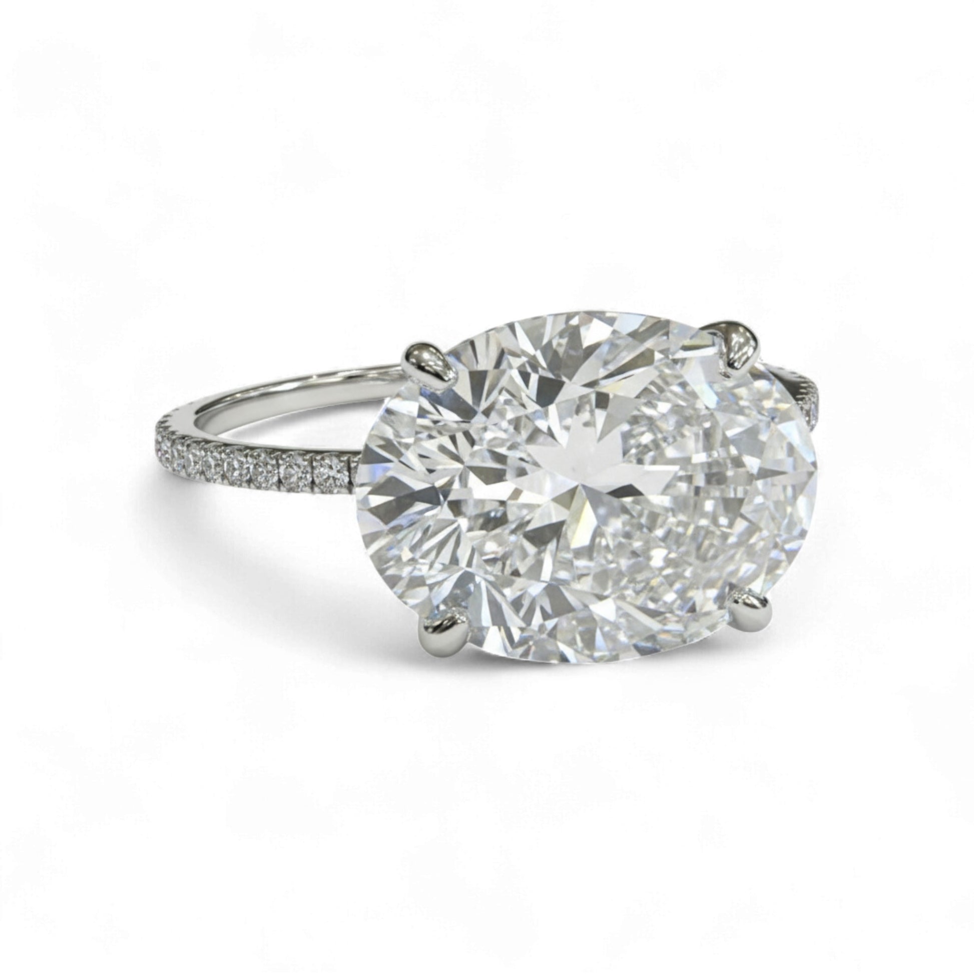 K Oval Horizontal Moissanite & Diamond Engagement Ring in 18K Gold