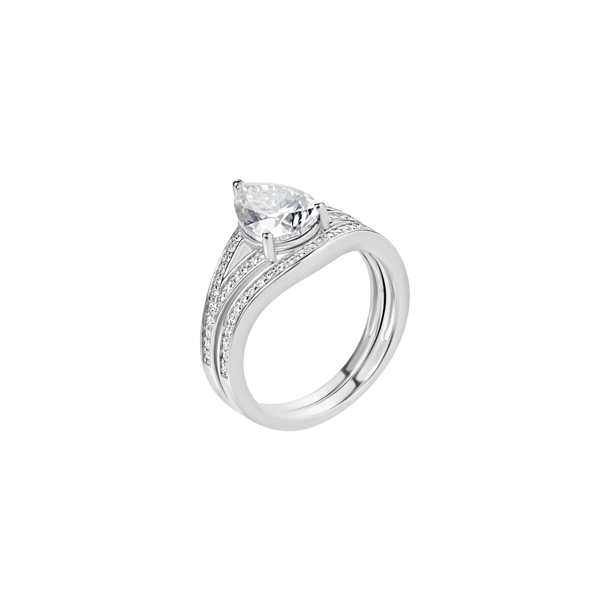 The pear cut, often called the teardrop of joy, is a symbol of romance and devotion, capturing both the strength and tenderness of everlasting love. Its graceful silhouette, paired with the modern split-shank design, reflects a love that is bold, radiant, and enduring. The Split Shank Pear Cut CZ Bride Set is more than jewelry, it is a radiant promise of forever, crafted for the bride who desires elegance with a touch of modern brilliance.