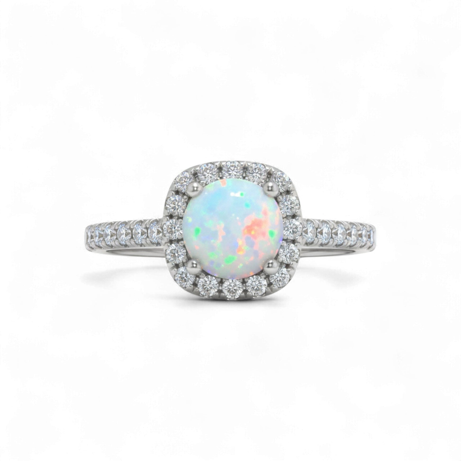 The sleek silver band is adorned with petite, clear CZ accents that enhance the center stone’s radiance, creating a look that is both striking and sophisticated. Perfect for the bride who dares to stand out while embracing timeless elegance.